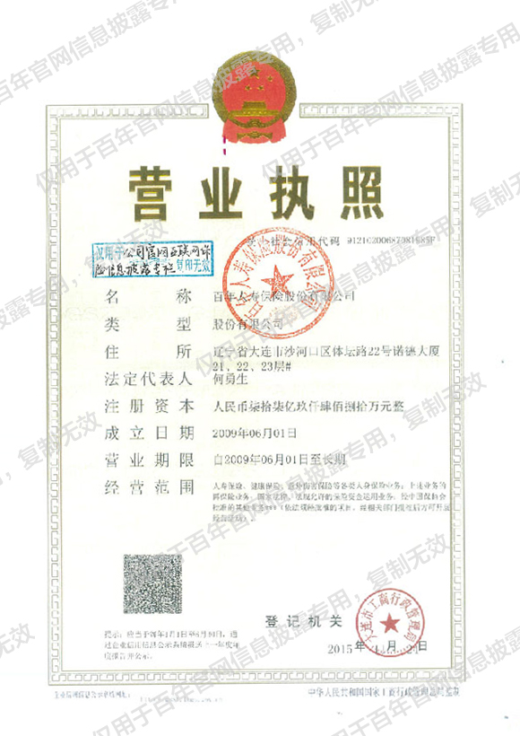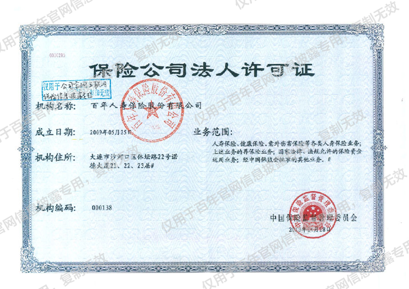一、营业执照、保险公司法人许可证