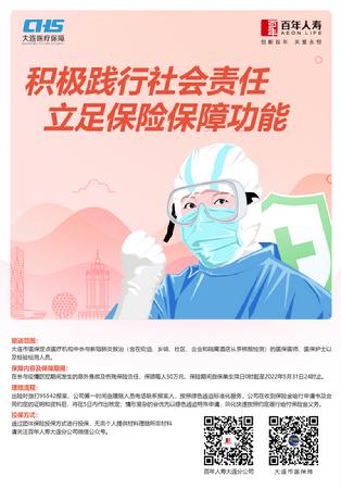 为切实加强抗疫一线人员的安全风险保障,减少他们的后顾之忧,百年人寿大连分公司积极践行社会责任,制定了专项保障方案,为大连市定点医疗机构中在抗疫一线(含在街道、乡镇、社区、企业等集中检测点)抗击疫情、参与救治的医保医师、医保护士、核酸检测人员赠送意外身故/伤残保险保障。据相关负责人介绍,此次赠险覆盖约3.5万人,赠险范围内的被保险人在参与疫情防控期间(保单生效日0时起至2022年5月31日24时止),若不幸发生意外身故、意外伤残等情形,将给予最高50万元/人的保险保障。