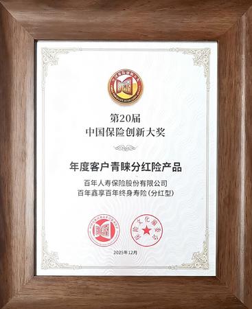 当行业创新的聚光灯再次点亮,中国保险业权威性的年度盛事——中国保险创新大奖颁奖盛典圆满落幕!百年人寿重磅力作“鑫享百年终身寿险(分红型)”(以下简称“鑫享百年”)凭借突破性的产品设计、对客户需求的深度洞察以及扎实的资管支撑,从近百家参评机构、数十个申报项目中脱颖而出,成功斩获“中国保险创新大奖年度客户青睐分红险产品奖项”!这不仅是对百年人寿产品创新力的高度认可,更彰显了百年人寿“新百年”战略转型的卓越成效。