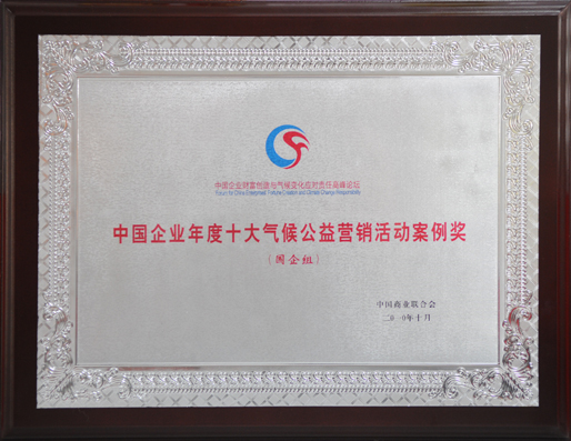 中国企业年度十大气候公益营销活动案例奖证书