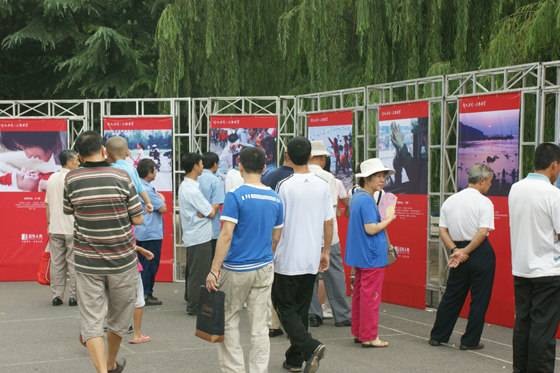 充满浓浓关爱之情的100幅优秀摄影作品不仅有众多大连当地市民前来观展,更有不少外地游客被吸引参观。在展览的3天内,观展者超过3万人次。这其中有独自前来欣赏学习的摄影爱好者,但更多的是普通市民,有七十多岁的老人,也有几岁的孩子,有夫妻携手,也有同学结伴,劳动公园狮子广场上观者如织。一幅幅优秀作品满含关爱之情,让观展者倍受感动,部分市民在作品前流下了感动的泪水。一位母亲一手抱着孩子,一手在轻轻擦拭眼角的泪水:“心酸,感动。在这张一等奖照片中,残疾老师在那么苦的条件下教孩子们学习知识,孩子们的眼神里充满了对知识的渴望,我们这些生活条件相对较好的人,应该伸出手去关爱他们、温暖他们。”